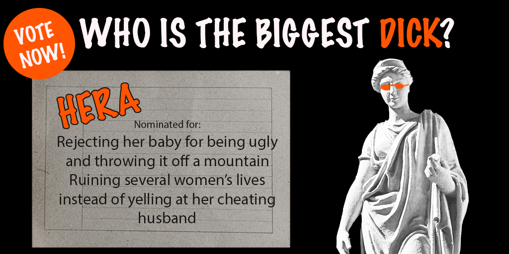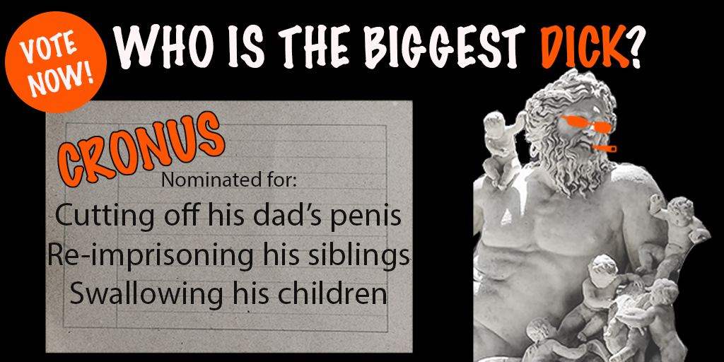 It’s about time we stopped respecting myths and started laughing at them. Did you know Aphrodite, goddess of love and beauty, was born of some discarded genitals? Or that Hera threw her own son off a mountain because he was ugly? Or that Apollo once kidnapped a boat full of people while pretending to be a dolphin?