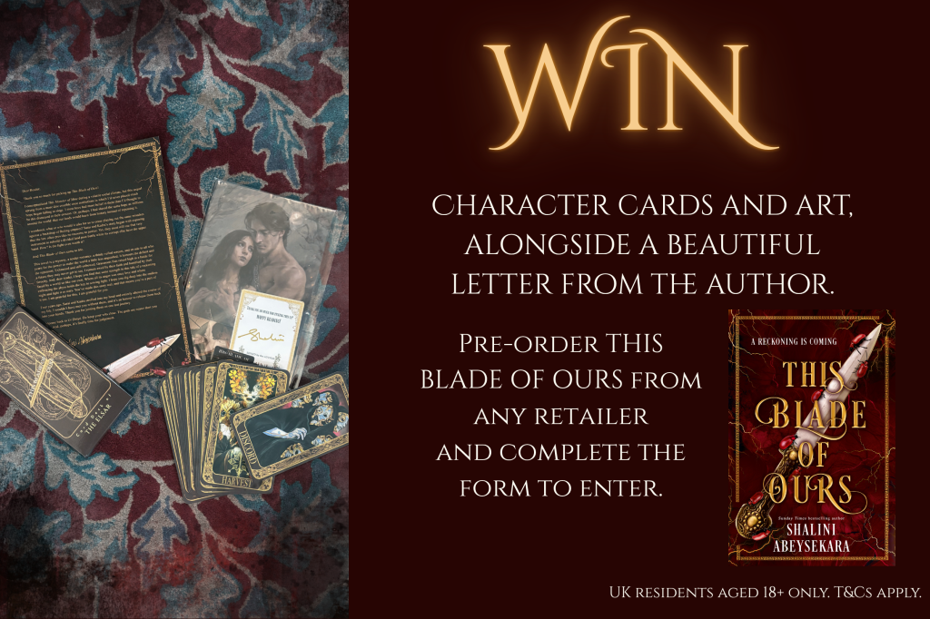 Enter the prize draw by pre-ordering a copy of THIS BLADE OF OURS by Shalini Abeysekara and filling out the below form: